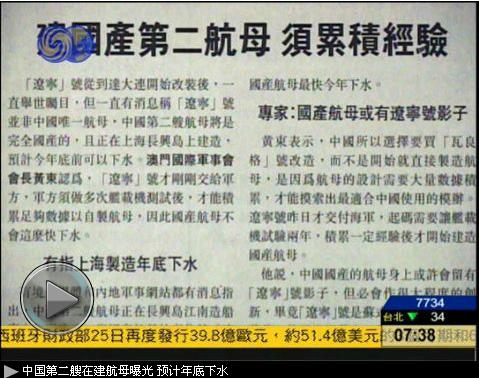 凤凰卫视9月26日《凤凰早班车》节目播出“中国第二艘在建曝光预计年底下水”,以下为文字实录: 杨舒:中国第一艘航母才刚刚交付海军使用,而各界已经高度期待中国第二艘航空母舰了。 《明报》的报道说,中国第二艘完全国产的航母正在上海长兴岛上建造,预计今年年底就可以下水。 有澳门的军事专家说中国国产的航母身上可能会留有辽宁号的影子,但必定会做出很大程度的创新。 因为毕竟辽宁号是苏联式设计,设计理念是有点落后使用常规动力,这跟中国心目中理想的美式核动力航母差距较大。
