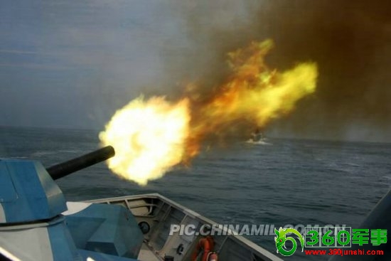 资料图:南海舰队某导护艇大队火炮对“敌”攻击。