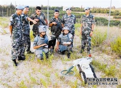 •   外国维和军人对我扫雷机器人兴趣浓厚。钱宗阳摄