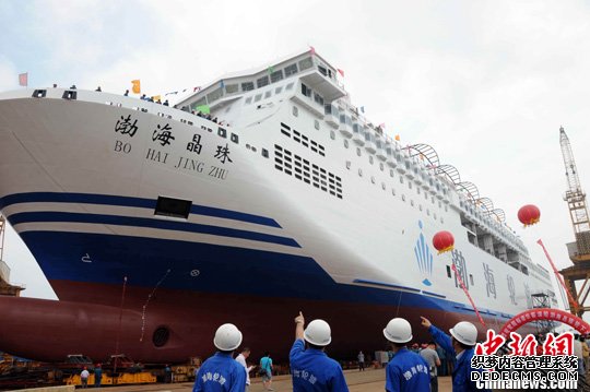 • 中国自行设计建造的目前国内最大客滚船“渤海翠珠”号。中新社发 王建波 摄