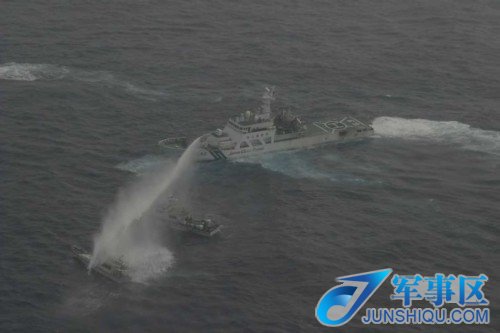 1月24日,保钓船在钓鱼岛海域遭日船水炮攻击
