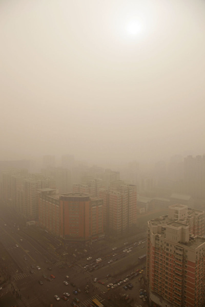 2月28日,北京五道口清华东门附近,沙尘来袭。