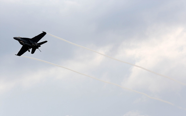 2月26日,一架澳大利亚皇家空军F/A-18S“超级大黄蜂”战斗机在澳大利亚墨尔本进行空中表演。当日,2013年澳大利亚国际航空展在墨尔本阿法隆机场揭开帷幕,来自美国和澳大利亚等国的先进战机和民用飞机进行了精彩的飞行表演,成为当天航展的亮点。