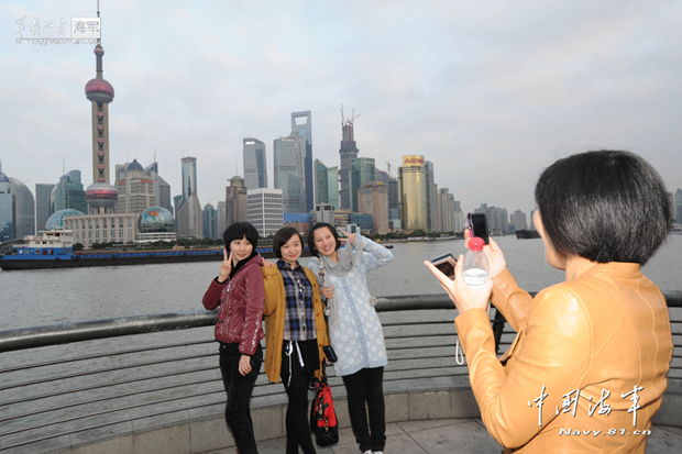 东海舰队某水警区退伍女兵畅游上海