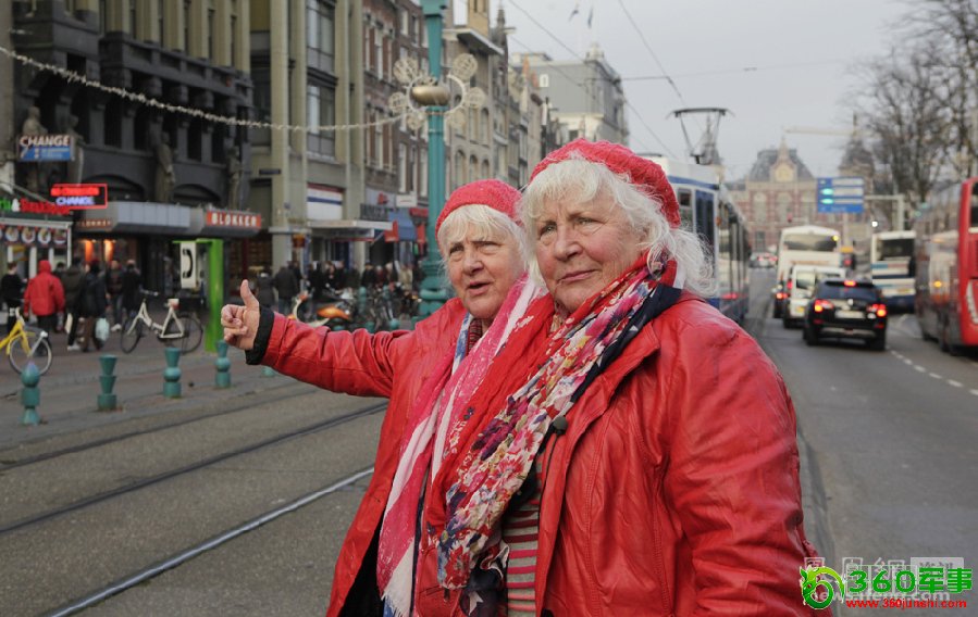 “在60年前,姑娘们要尽可能展示自己的脚踝,这样会有更多顾客敲你的窗户。不过如今那套已经不管用了,在闺房里窝着喝可乐的女孩反而更受欢迎。”从业50多年的她们这样评价自己职业的变化。图为姐妹俩走过阿姆斯特丹街头。