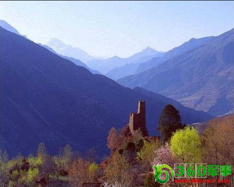 建在山间的庄园:这里有一座带有古代藏式建筑风格的九层高塔,在以前,民众住六层以下,唯女王居九层。可见,东女国擅建高碉且建筑水平高超,女王则高高在上。