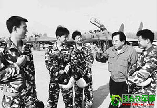 原南京军区空军副司令韩德彩中将到老部队看望新飞行员